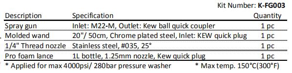 KEW FOAM GUN KIT - MAX 4000PSI/ 280BAR