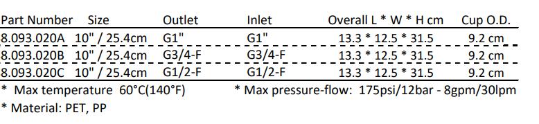 3-PIECES WATER FILTER HOUSINGS WITHOUT CARTRIDGE FILTER